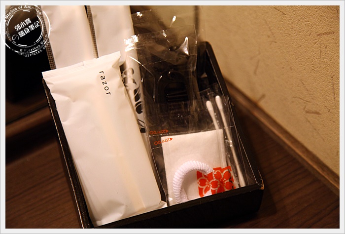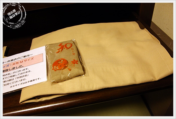 | 一旁放置的是給客人去大浴池泡湯的毛巾及浴巾還有其他沐浴會需要的用品。 |