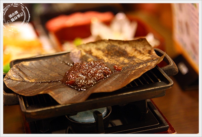 高山有名的鄉土料理是僕葉燒,也就是當地的味噌放在圤葉上面,再將牛肉放上去燒烤會有獨特的資料,但是我個人還是喜歡直接把牛肉放在鐵盤上吃他原本的鮮甜滋味啊!