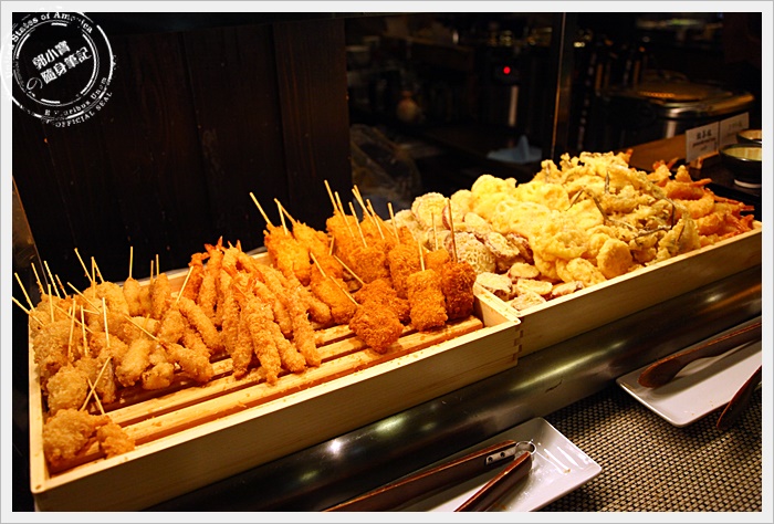 | 其他自助餐廳上的品項也是琳瑯滿目,超多串串炸跟牛肉串還有炸蝦也都是吃到飽的食材之一,也有大家喜歡的生魚片,這吃到飽的陣容真的很強,少數看到那麼一泊二食可以吃的那麼盡興的一餐。 |