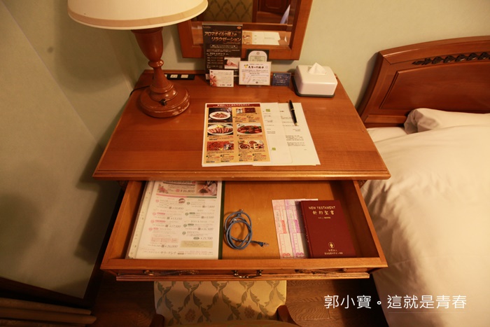 | 床頭櫃上有電源插頭非常實用,對於睡前都會划手機又想一邊充電的我真的非常方便。 |