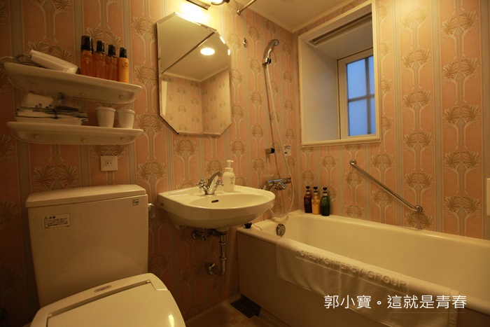 | 浴室也是滿滿的歐式風情,這個女孩子看到應該都會很喜歡,馬桶是使用免治馬桶,浴缸是屬於中型浴缸,這廁所看起來跟台灣的廁所比較相近,但是壁紙貼的真的很粉嫩又高雅。 |