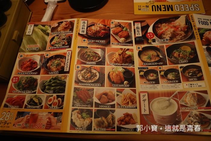 鳥貴族其中最讓人推薦的重點就是菜單內的產品均一價280日幣,大約是換成台幣在90元左右 |