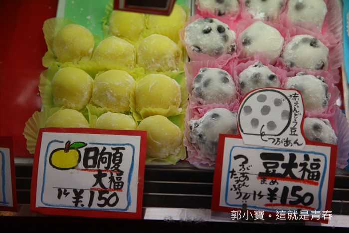 | 日高和果子店招牌商品據說是它們超大份量的大福及黑砂糖饅頭。 |