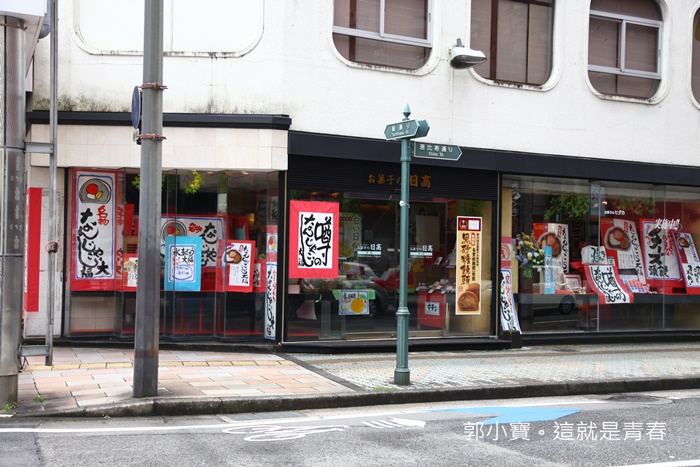 | 宮崎之旅的最後一天白天,我問了一下此次採訪行程隨行的日本人,問了一下當地人如果想買一些比較有代表性的伴手禮或是甜點都會去哪一家,日本人想了一下紛紛討論後就推薦我們這一家,還很好心的帶我們過來看看,這一家店就在宮崎的商店街上,是一間三角窗的店面。 |