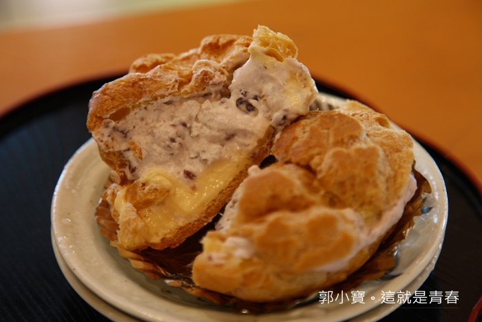 | 日高的泡芙吃起來跟普通的泡芙沒有太大的差異,主要是她算是很便宜,酥皮的部分也做得非常好,內餡也不會打得過膩過甜,底層的布丁有畫龍點睛的效果。 |