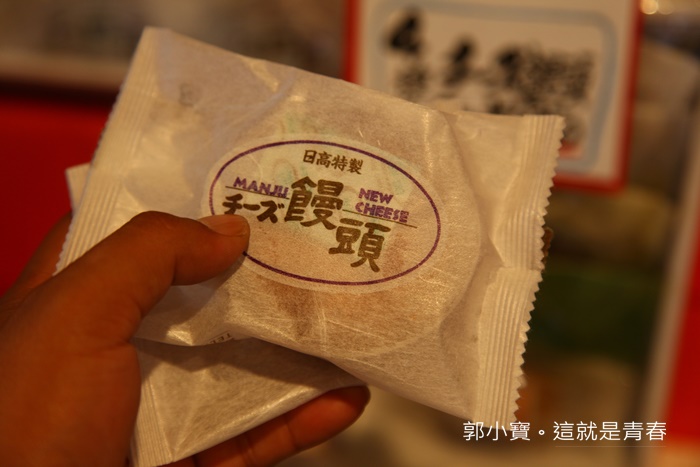 | 日高的饅頭口味選項真的太多太複雜了,所以當地的日本人就推薦了一款他自己喜歡吃的給我們試試看,這一款真的還滿好吃的,帶點起司的香氣,是台灣人會喜歡的口味,口感也不錯,難怪會那麼受歡迎。 |