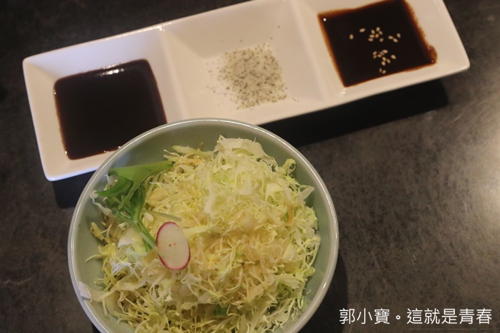 | 套餐還有附上高麗菜絲跟調味料,其實這邊除了炸豬排套餐出名以外,他們家的豬排咖哩飯據說也非常有人氣,。 |