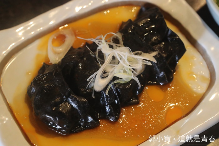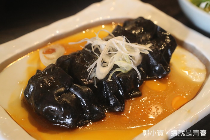 同樣是以焦黑料理為主題的黑色餃子皮,裡面包裹的當然是元近馳名的六白黑豚,吃起來餃皮帶有嚼感,豬肉鮮甜,我還滿喜歡的,但是餃子我還是覺得台灣的餃子真的隨便吃都還滿強的。