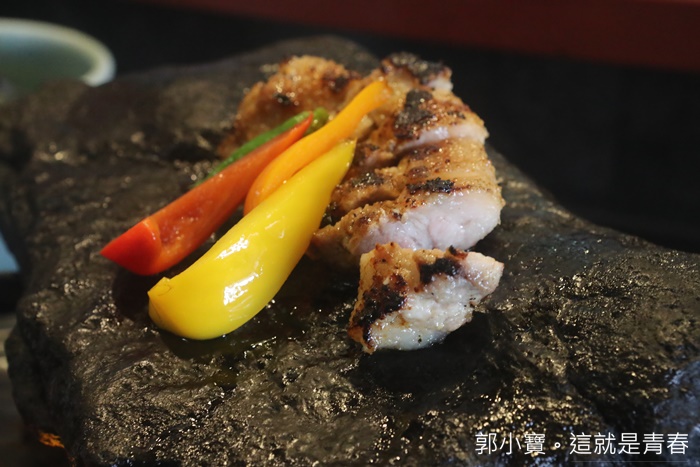 | 這使用櫻島熔岩石板底下加上炭火來燒烤六白黑豚簡直是超道地的享受,全部都是鹿兒島縣的特色物產。 |