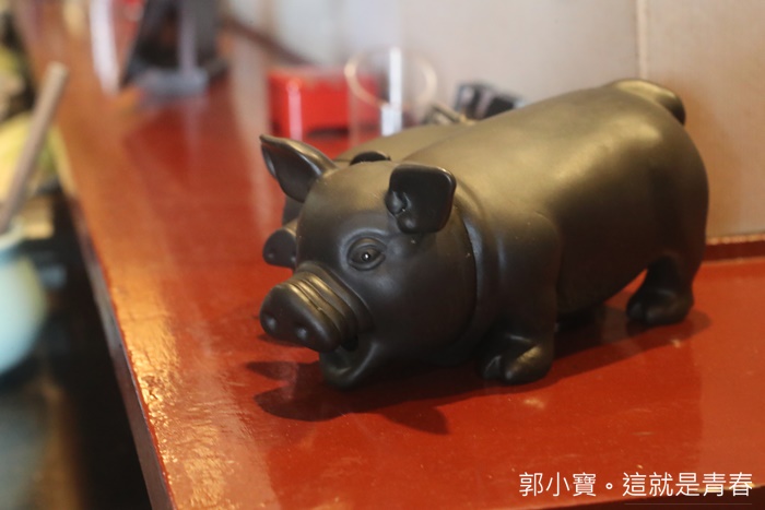 | 桌上的黑豬公仔真的好可愛,這邊最有話題的就是黑炭豬排料理,簡稱臭火搭料理。 |