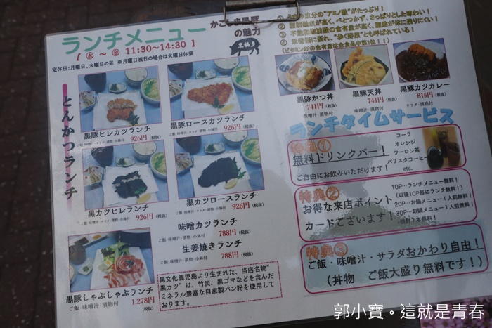 四年來三次結果每次都公休真的有點難過,尤其這一次還是臨時公休,真的跟這一家店很無緣,希望下次可以順利造訪,但是幸好這一次有吃到黑福多,不整體上我覺得黑福多的價位相對比較便宜,如果吃午間限定套餐的話那就賺更多了,一份套餐不用1000日幣就可以吃到鹿兒島日本一的六白黑豬,保證妳值回票價XDDD