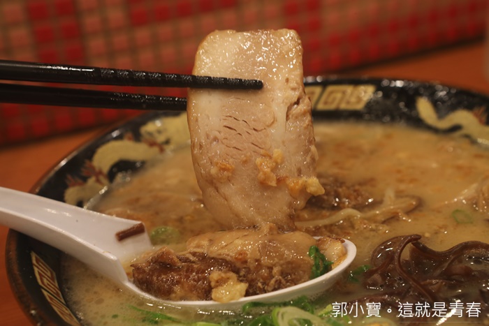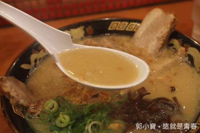| 湯頭喝起來那濃郁的滋味跟飽滿的口感真的就是道地的豚骨湯頭,但是它們家喝起來的濃稠感沒有那麼重,還算是可以入口。 |