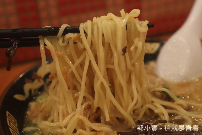 | 麵條因為我選擇的細麵,吃起來每個麵條跟湯汁都有緊緊的巴再一起,每一口都是濃郁的豚骨滋味,頗為滿足,但是比較怕味道太濃的朋友可能要三思,因為它們家的背脂味道真的算是滿濃郁的。 |