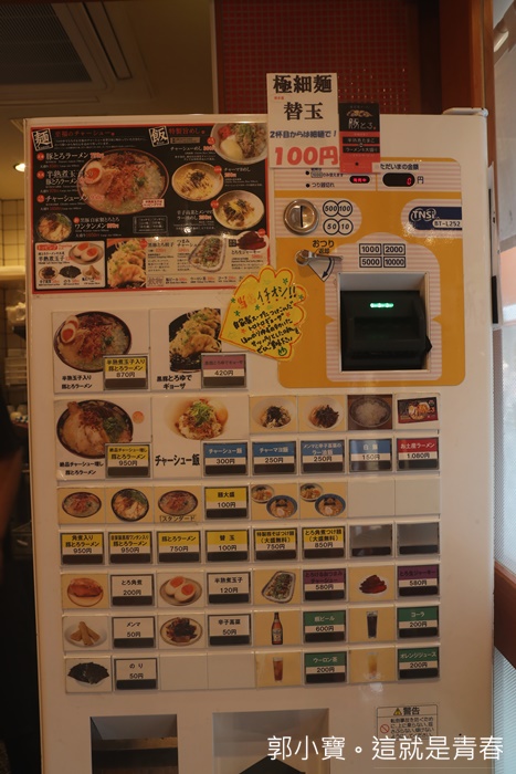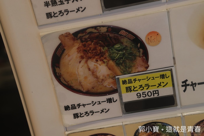 | 豚とろ使用的是票卷機點餐,放入金額後點選妳想吃的餐點即可,我個人選的就是標榜絕品的叉燒增量的豚骨拉麵。 |