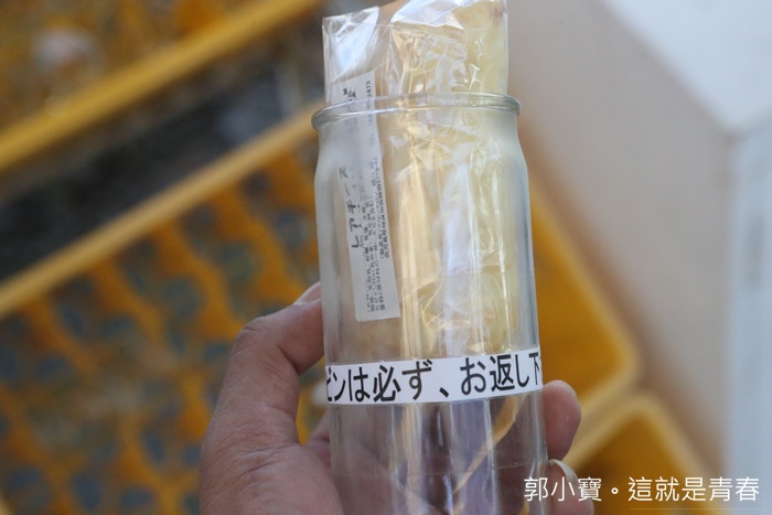 | 拿出可麗餅後記得把玻璃瓶放在旁邊的回收箱裡面,如果你沒有當場要吃的話,販賣機旁邊有準備塑膠袋可以裝,好貼心又環保。 |