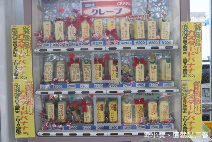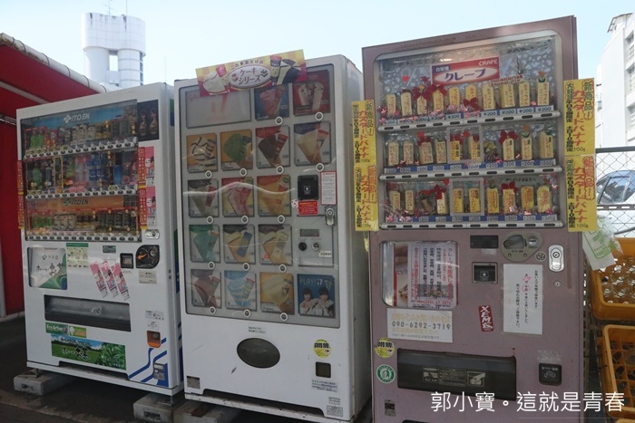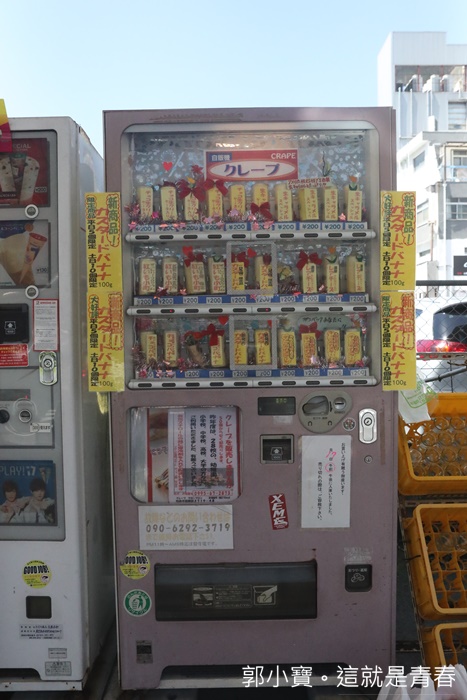 就是天文館鬧區大馬路邊的這一整排自動販賣機,日本自動販賣機賣的東西真的是五花八門,這一台卻是鹿兒島最受歡迎的販賣機,且目前全日本就只有一台,賣的東西竟然是可麗餅甜點,真的太妙了,因為我個人很愛吃日本軟式可麗餅,所以一直想試試看販賣機的到底跟現在的有沒有差別。