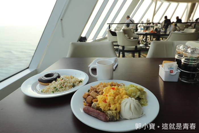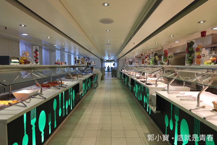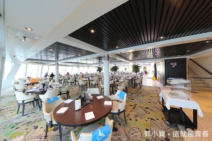 | 基本上自助餐廳是我個人最推薦的餐廳,新浪漫號的船體沒有很大,但是卻運用了很大的空間在經營這自助餐廳,貫通前後甲板,就是為了讓遊客有個舒適的用餐空間,早餐通常我也都是在自助餐廳用餐。 |