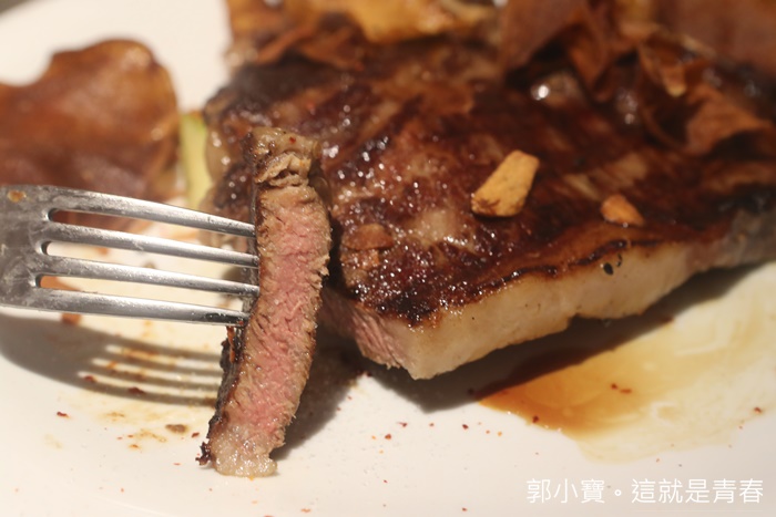 | 牛排的部分也處理得很軟嫩,有點像是低溫熟成的牛排,沒有甚麼筋會卡牙,入口那牛肉的滋味都在嘴裡散發,非常美味,有出乎我意料之外的好吃,而且分量也相當大,一路吃到這邊都感覺有點過撐了,除非妳食量非常的大,不然其實點一般的就可以了。 |