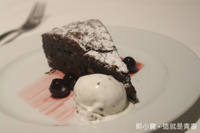 | 甜點的熔岩巧克力布朗尼很好吃,巧克力從裡面流出來的時候還是熱呼呼的。 |