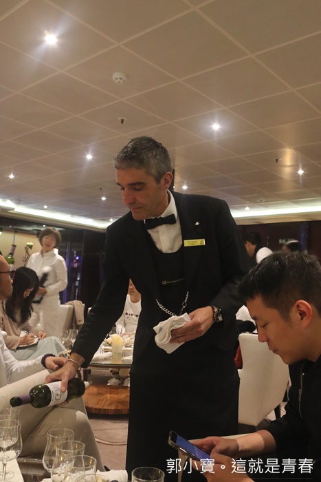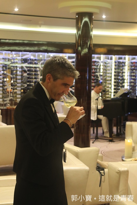 | 紅白酒師還滿型的,非常斯文且笑容滿面,唯一比較麻煩的就是全程英文,所以更深入了解紅白酒可能要有一點英文能力,如果只是單純的愛喝紅白酒,那就不用考慮那麼多了,倒什麼就通通把他喝下去就對了XD |