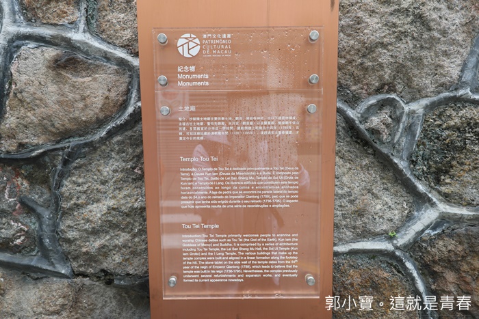 | 後來逛完才發現土地廟也被歸類在澳門的文化遺產裡面,上面也寫了有關於他的歷史,相當值得一逛,其實來澳門真的可以規劃一天的文化之旅豐富自己的身心靈。 |