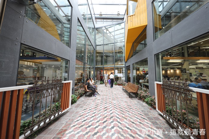 | 沙梨頭圖書館的正門跟建築物有相當反差的感覺,走進大門就感覺到現代化的氛圍,大面積的玻璃充分地讓陽光照射進來,說真的很適合女孩們來這邊自拍。 |