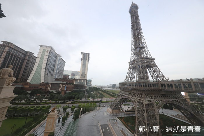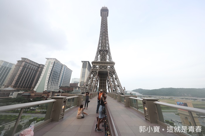 | 巴黎鐵塔上的景色真的無限好,一眼眺望整個澳門島的風光,還可以一眼看盡整個巴黎人飯店的全景,這邊看巴黎人酒店一整個就是壯觀無比,真的超美的,如果晚上上來看的話不知道風景又是如何呢! |
