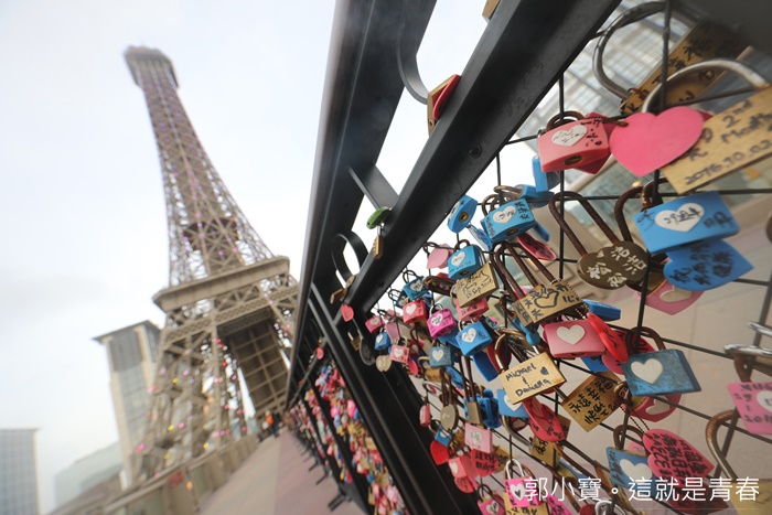 | 通往巴黎鐵塔的天橋上中間的分隔欄上面還鎖了滿滿的情人鎖,情侶來這邊通常都會買上一個鎖頭寫下來個人的名子,希望可能牢牢的鎖在一起。 |