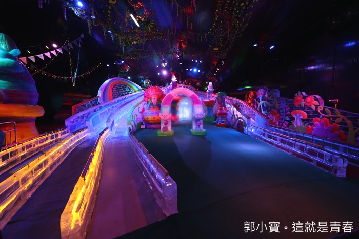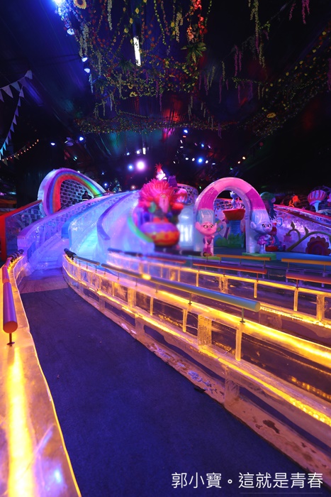 | 小朋友一整個玩瘋的超長冰雕溜滑梯,我可是等了很久很久才拍到這沒有人的階段,因為有些父母親並不是那麼想讓小朋友露臉,所以我還是等了很久才拍到這張空景,這溜滑梯加上七彩顏色的打燈一整個就像是夢幻城堡般的感覺。 |