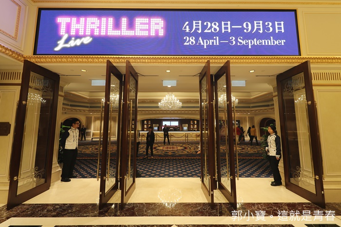 | 看完冰雕秀以後我們直接前往澳門巴黎人的表演廳,這邊是很多人都在搶票的麥可傑克森的紀念展歌舞秀,基本上就是座無虛席的表演。 |