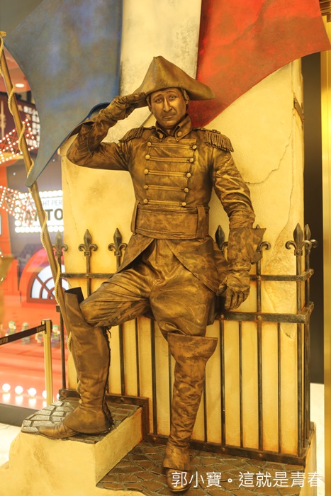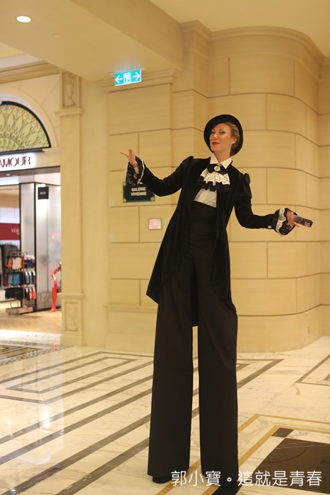 | 除了挑高的大廳跟水池以外,處處可見澳門巴黎人暗藏心思,許多讓遊客感受到巴黎風情處處都有,轉個街角上個樓梯都可以看到巴黎人闢請的工作人員,不管是小丑還是裝置藝術還是街頭藝人通通無所不在,真的走在巴黎人裡面就有如置身於法國巴黎般的夢幻。 |