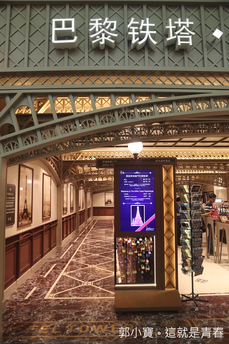 | 來到澳門巴黎人除了近來飯店裡面感受一下巴黎風情以外,當然還要登上澳門巴黎鐵塔眺望整個澳門島,巴黎鐵塔的入口在二樓的購物中心內,有點不太好發現,入口不是很大,好險有明顯的路標指示,不然我經過可能都還不知道這就是入口。 |