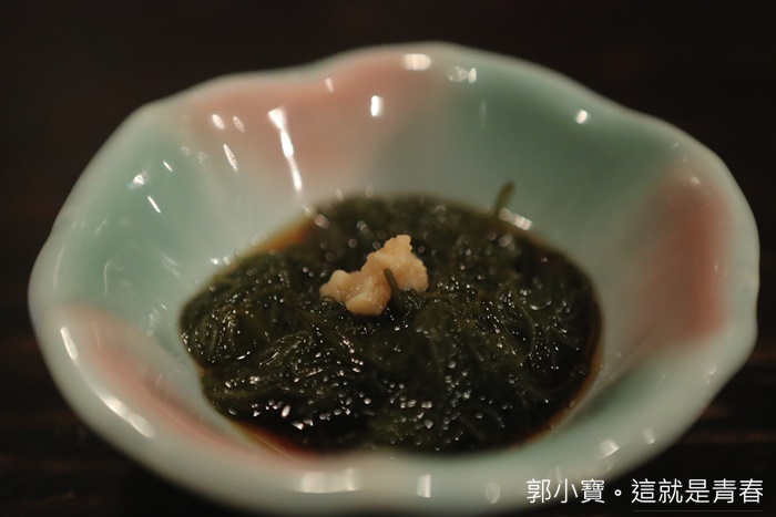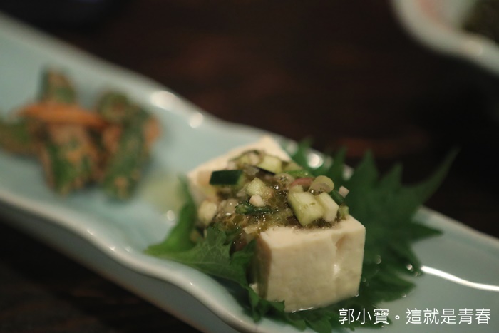 | 除了豆腐非常綿密以外,還有這類似紫色或是海藻類的食材,這口感有的人喜歡有的人不喜歡,同行的人有人說很像吃鼻涕XDD |