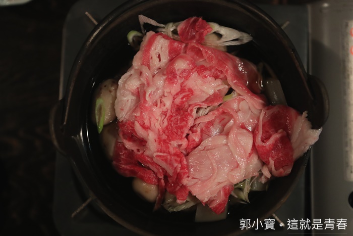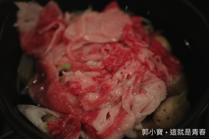 | 鍋子一打開就看到堆放滿滿的米澤牛,分量真的還滿多的非常豪邁,馬上蓋上蓋子加火快煮。 |