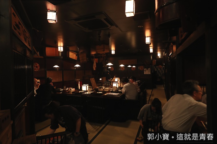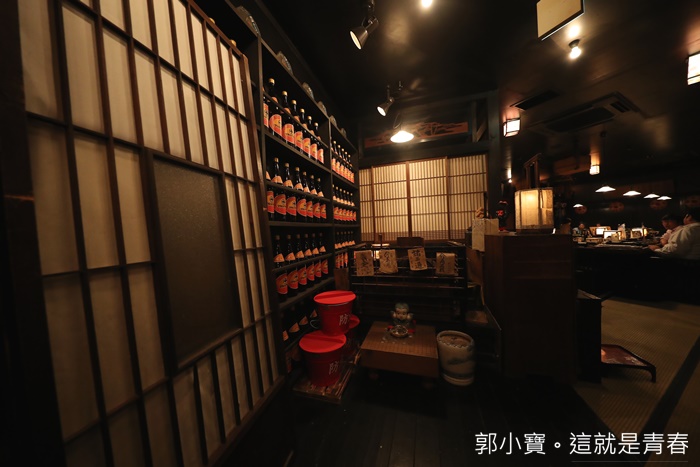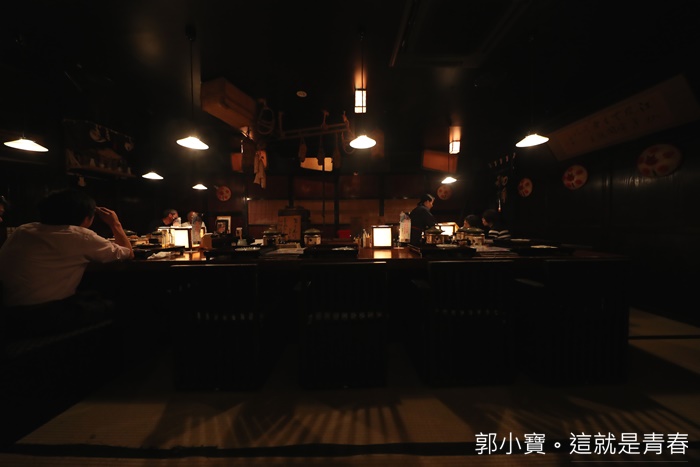 | 室內是需要拖鞋的,全部都是鋪設榻榻米,我們大約下午6點多進來就已經有很多人潮了,除了有大空間的吧檯以外還有很多小包香跟大包廂,裡面的人感覺都非常歡樂,從外表真的看不出來裡面那麼熱鬧。 |