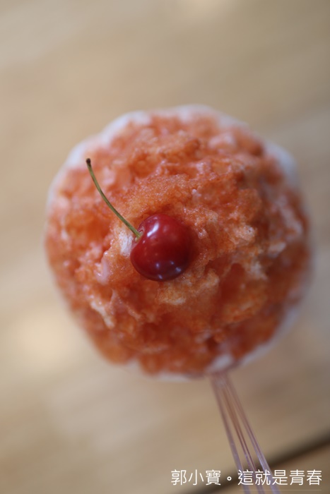 | 山形遍地都是櫻桃,也是日本櫻桃最大的產區,所以來到這邊當然就是瘋狂的吃櫻桃,就連冰品也別忘了點上這招牌口味櫻桃雪花冰,看起來就超美的。 |