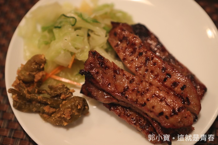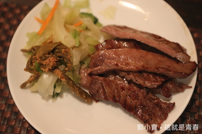 | 塩烤的部分就好許多了,我個人還是喜歡撒點塩帶出牛舌本身的鮮甜滋味,但是口感還是有點過老,頗為可惜,不知道是甚麼原因,因為看起來似乎也不是烤過頭的感覺,倒是旁邊的醬菜我還滿喜歡的。 |