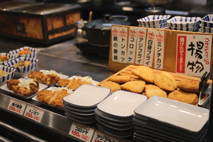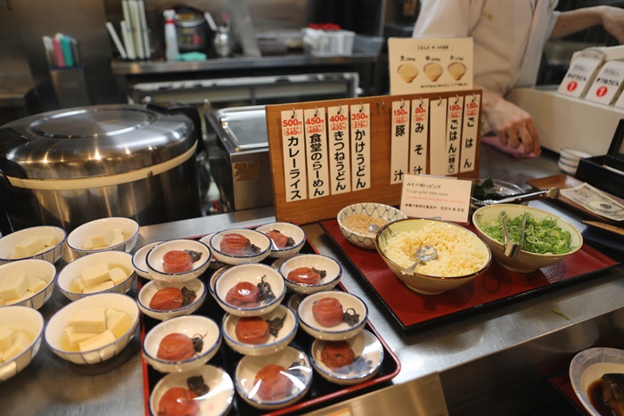 各式各樣的菜色還有豆腐、蒸蛋、生魚片、生菜沙拉等等通通都有,簡直都快比台灣宵夜清粥小菜還要豐富精彩,冷藏箱櫃裡面也有啤酒跟果汁跟氣泡飲料。
