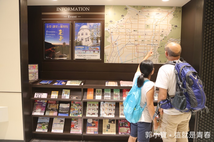| 大通走道旁邊還有很多當地地的旅遊資訊跟書報架可以免費索取,我們立馬去辦理入住手續準備前往我們這幾天在京都的房間。 |