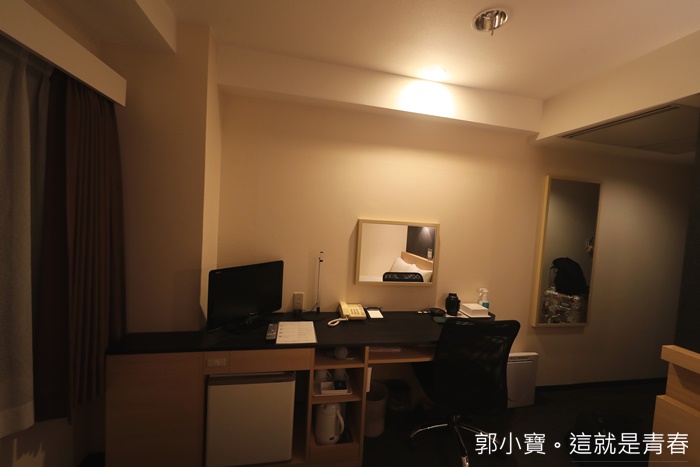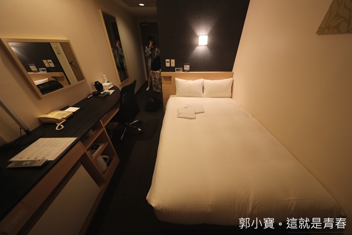 房間基本上就是一般的商務旅館,整體空間兩個人住還算舒適,感覺上還算是非常不錯,乾淨舒適以外空調也很夠力,走道雖然小了一點,但是床腳的地方還有一個空間可以放置行李,打開後也不會多佔到其他空間。