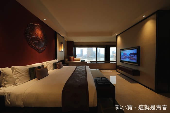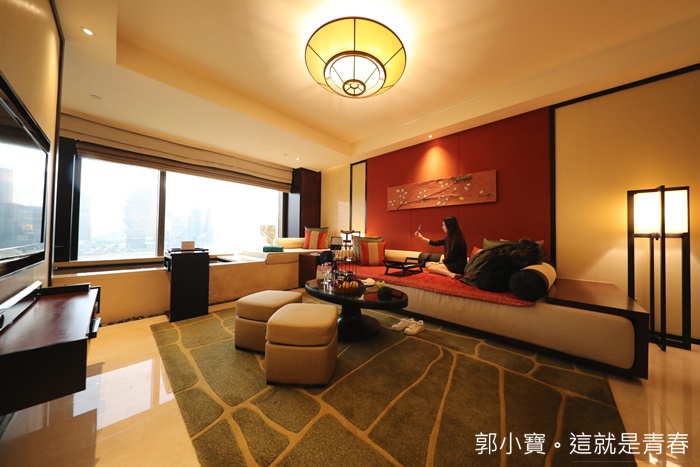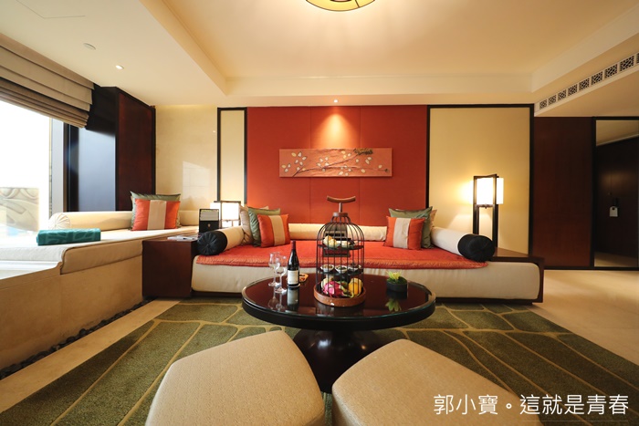 客廳說小不小但是也滿大的,中間使用一個隔間牆隔出客廳跟房間的兩邊,大面積的窗戶所以採光非常的好,第一眼看到這空間的我真的非常喜歡,這才是悅榕莊啊,不管色系還是裝潢、氛圍等等真的都讓人有放鬆渡假的感覺。