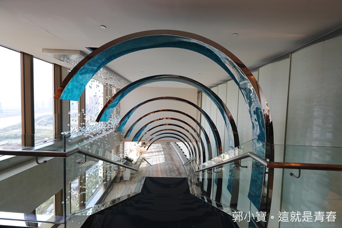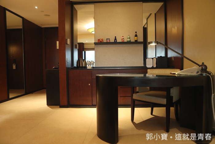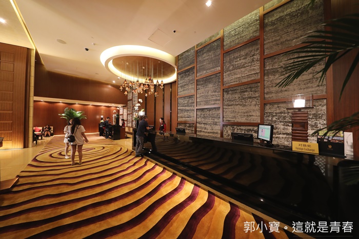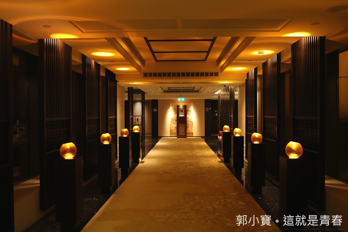 到達所住的樓層又是一陣驚訝,連酒店走廊都要這麼浮誇嗎,彷彿又來到了另一個國度,真的是極盡奢華跟度假風格,暗黃色的燈光讓人覺得放鬆以外,走在長地毯上非常舒服,木門片帶點中華文化,融合的恰到好處。