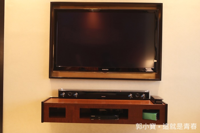 | 繞過隔間牆就是房間的空間了,房間的空間也非常棒,沒有過多的擺設讓人覺得舒服,也不會覺得太空,我覺得房間設計真的很俐落,房間這邊的隔間牆也有一台壁掛電視,兩邊床頭櫃的燈都是分開控制以外,插頭跟開關都是一樣的,不會只有一邊有插頭一邊沒有,因為房間的設計都是成雙成對。 |