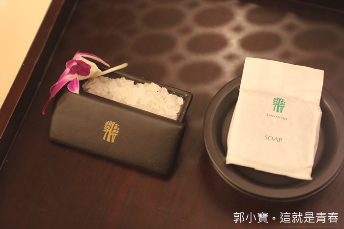 | 泡澡的沐浴鹽放置在木桶旁邊,它們家的沐浴鹽真的很不錯,用完了通知櫃台他們會再幫你送過來。