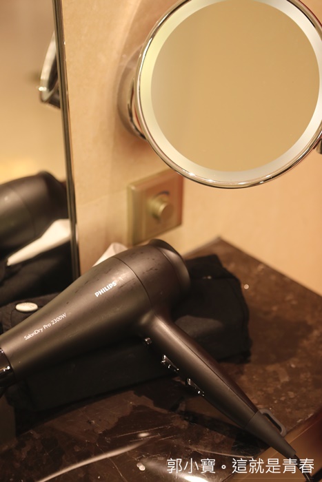 吹風機放置在化妝台,太妃說他們家的吹風機風量非常足,長髮的女生也不用擔心會吹太久XD