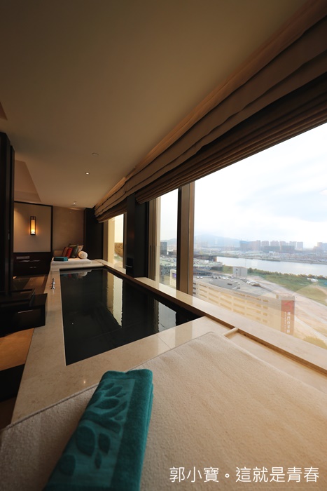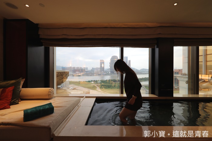 每個房間都有悅心池,很多人都稱他為小型的泳池,其實他並不會很深,做下去大概在胸口下面一點點的高度,水溫是恆溫控制的,重點是房間內有個小泳池看起來就是爽啊!