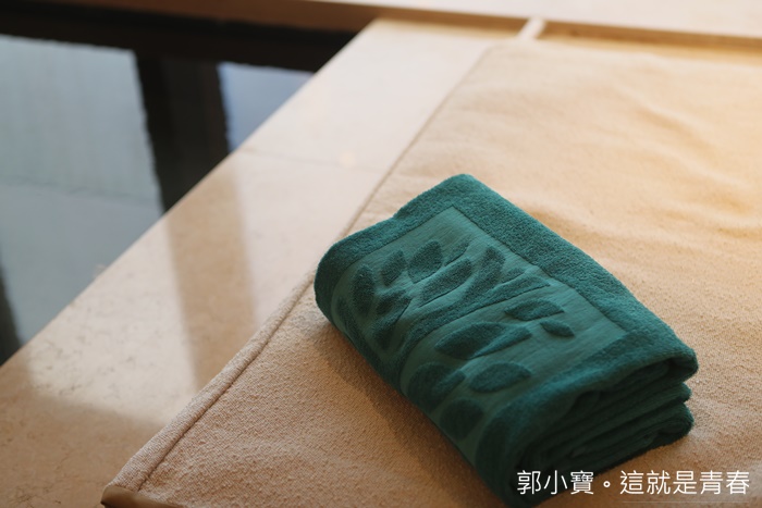 | 住在悅榕庄我真心覺得都可以不用出房門了,一入住就點個精油放鬆,不管你在懶人沙發上吃水果發呆還是在悅心池裡泡一下喝杯紅酒觀賞窗外美景,泡完再到懶人亭上躺一下,好多地方都可以發呆,悅心池邊還放了毛巾讓你擦拭,真的是一個很哭杯的地方,超厲害! |