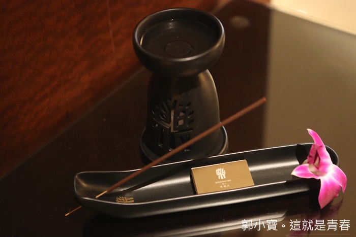 | 一進入後就可以看到客房的前櫃擺放著客人選擇的精油跟薰香,這一點真的非常棒,建議不知道要點甚麼味道的話,可以點一下悅榕庄的代表香氣,香茅! |