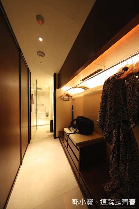 | 左邊的衣物間非常大,後來從工作人員口中才得知,悅榕莊很多設計的想法都是從成雙成對出發,就是戀人的旅遊,很多事情都是戀人一起行動,所以很多地方都可以看的出來,衣物間的行李櫃有兩個,吊掛衣服的也有兩個都在同一個空間。 |