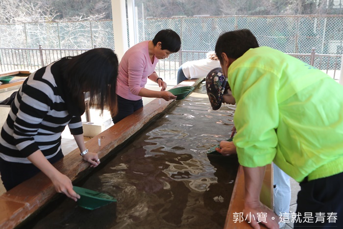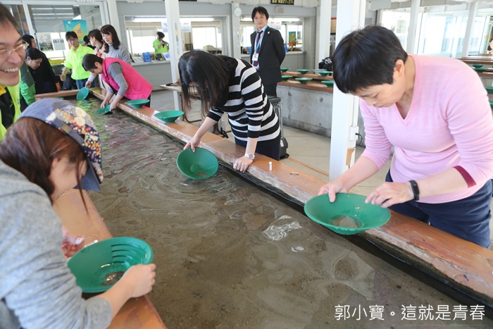| 工作人員細心的教導我們如何掏金,保證每一次都可以掏到砂金,大家都超仔細在聽工作人員講解的,這樣的體驗活動似乎在台灣九份的金瓜石博物館也有,但是我個人第一次掏金體驗卻是在佐渡島的西三川XD |